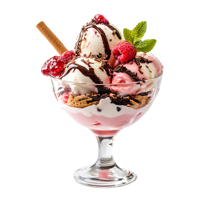 Pulpe de fruits, yaourt Naturel, fruits, fruits secs, crème chantilly, chocolat, noix, biscuit, pistache granuler, glace